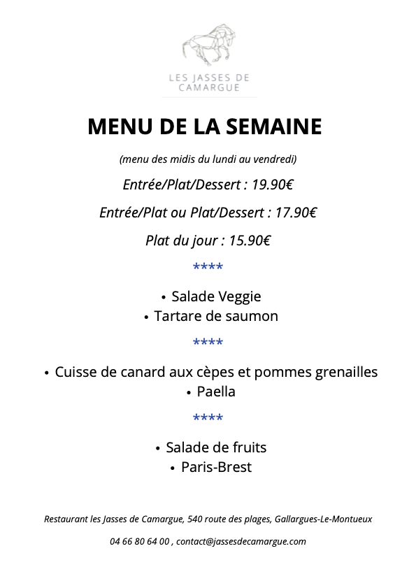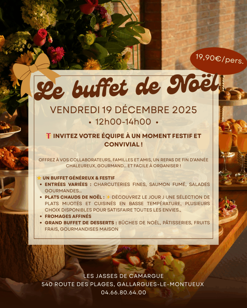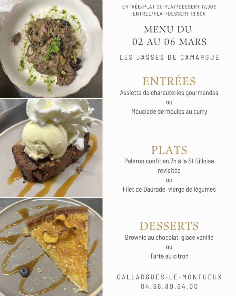 Reservations by telephone on 04 66 80 64 00 Online booking Come and spend Valentine’s Day at Jasses de Camargue! A refined menu for an exceptional evening. See you soon!